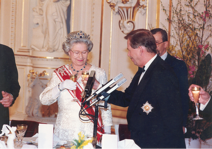 Queen Elizabeth II and Václav Havel toast with the Copenhagen collection