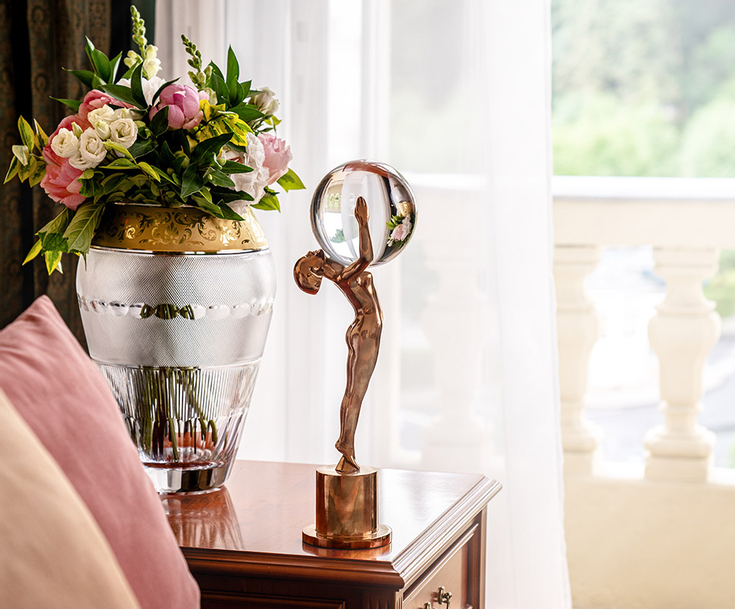 The challenging and precise work of our glassmakers hides behind the simple and elegant form. When the casts arrive at the glassworks, the crystal balls need to be made. They must have the exact dimensions of 11.5 cm to fit flawlessly in the statuette’s hands. It takes 20 minutes in the oven to create a single globe, but that’s the easiest part. It then passes into the cutter’s hands, whose job it is to work it into the perfect shape and anchor it to the statuette using a special material.