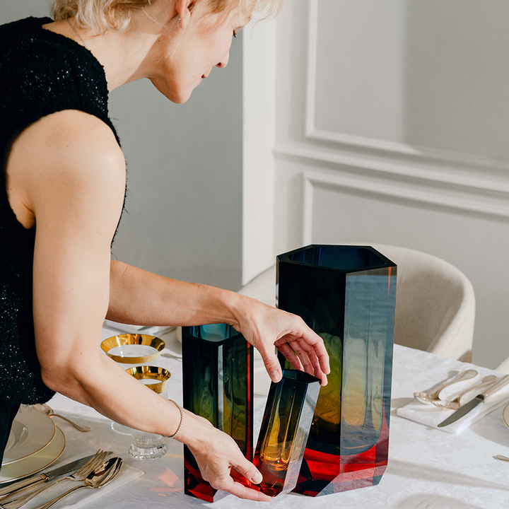 Das neue und immer beliebtere Stück, entworfen von Moser-Creative Director Jan Plecháč, ist von der Ästhetik des Brutalismus inspiriert. Die Vase Magnus ist ein selbstbewusster Solitär, der ein magisches Farbenspiel entfaltet – kühn, strahlend und unverwechselbar. Das ideale Geschenk für alle, die die Schönheit edlen Kristalls schätzen und moderne, mutige Designs suchen.
