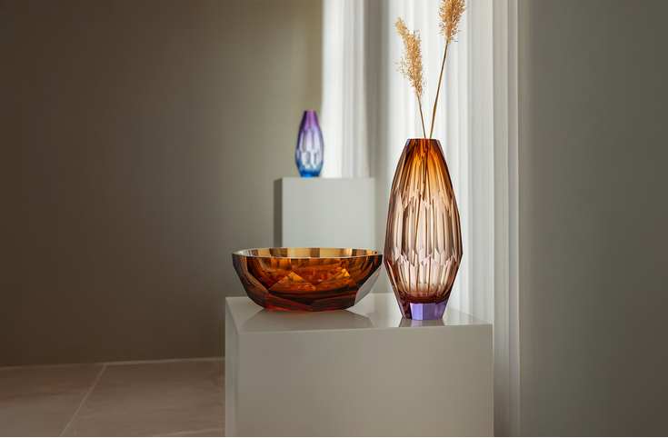 “Cubism left a deep impression in the Czech Republic. It intertwined with architecture, painting, furniture, porcelain, and glass,” says designer Rony Plesl, whose vases and bowls, designed for Moser, pay homage to this style. He greatly values collaborating with our glassmakers: “Moser is elegance, style, and craftsmanship.”