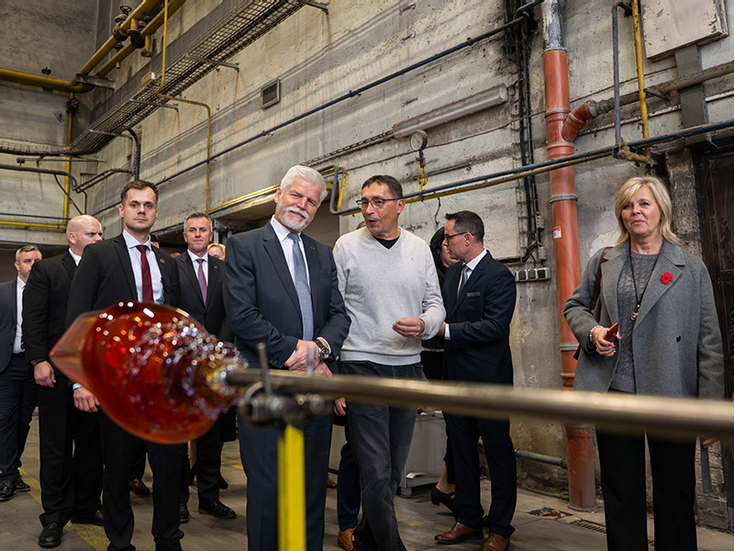 The President of the Czech Republic, Petr Pavel, and his wife, Eva, visited the Moser glassworks during their tour of the Karlovy Vary Region.