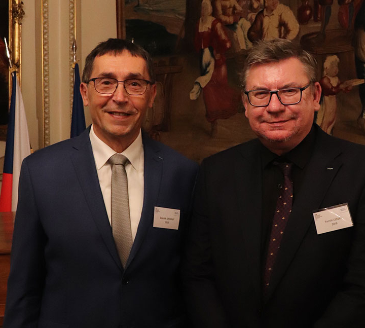 Engraver Tomáš Lesser and glassmaker Zdeněk Drobný accepted the invitation from French ambassador Stéphane Crouzat to the gathering of Czech members of the Ordre des Arts et des Lettres.